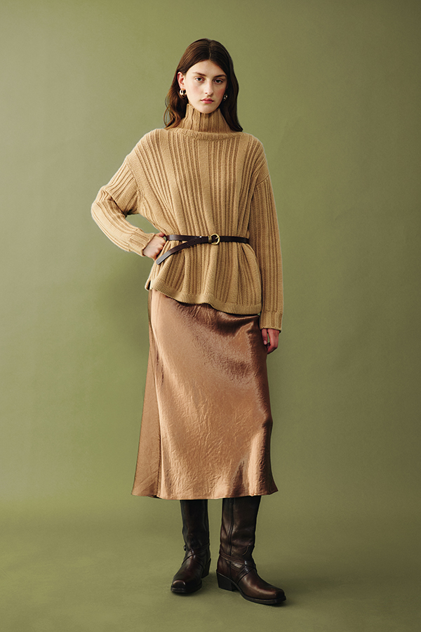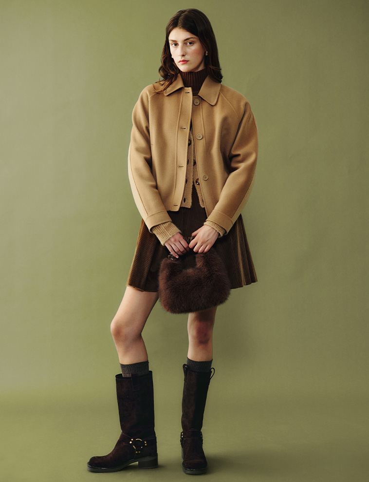 Elegance lies in the details and subtle shades. This season we celebrate the refinement of beige and its many shades, melting seamlessly into chocolate brown. These versatile colours suit every piece: from soft sweaters to our tailored coats, from fluid skirts to trousers that define the silhouette. An invitation to create layered looks with a palette of sophisticated and timeless colours.