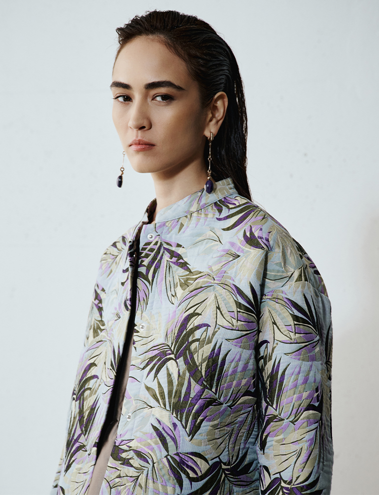 Per un tocco più urbano, i pantaloni palazzo tapestry si portano con un blazer bianco pulito e una camicia in seta laminata. Eleganza pura, senza sforzo.