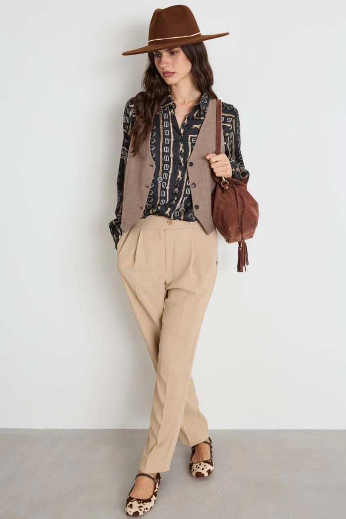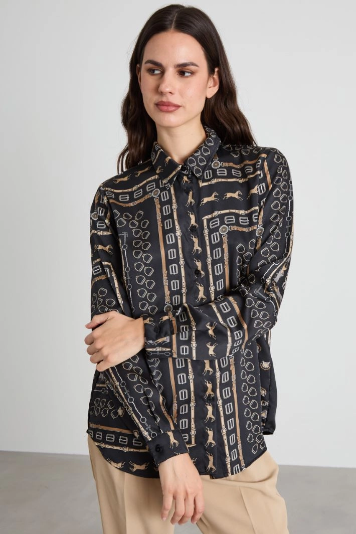 Flowing shirt in all-over printed twill, with classic collar, long sleeves with cuff and button, and visible button fastening.