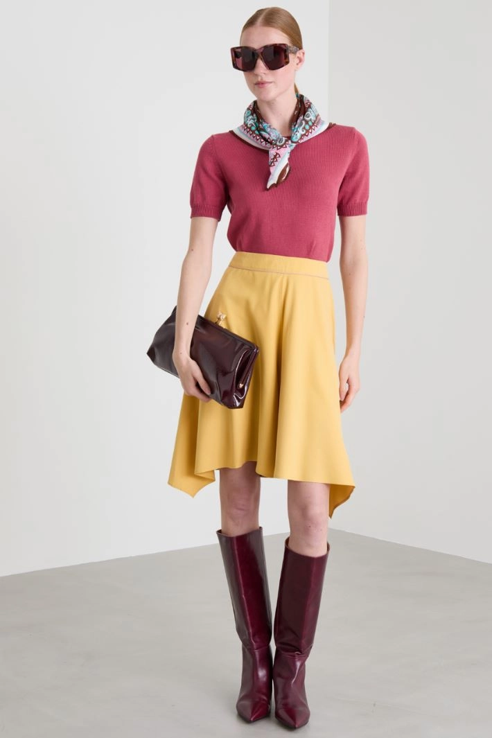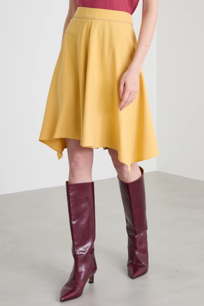 Flowing shorts in pure silk washed finish canvas, with asymmetrical hem and invisible zip fastening on the back.