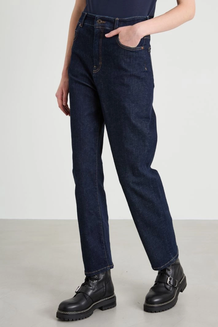 Boyfriend jeans in stretch cotton denim, with belt loops, five pockets and fastening with hidden zip and metal button.