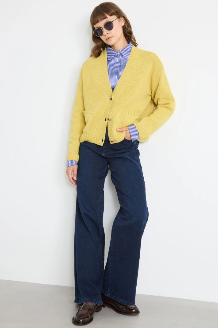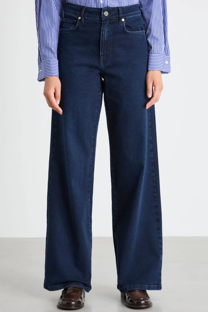 Wide-leg denim trousers