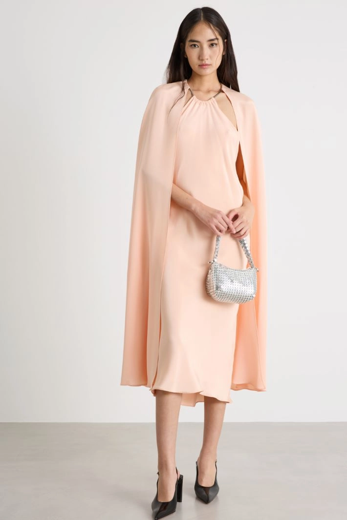 Caped crepe de chine sheath dress