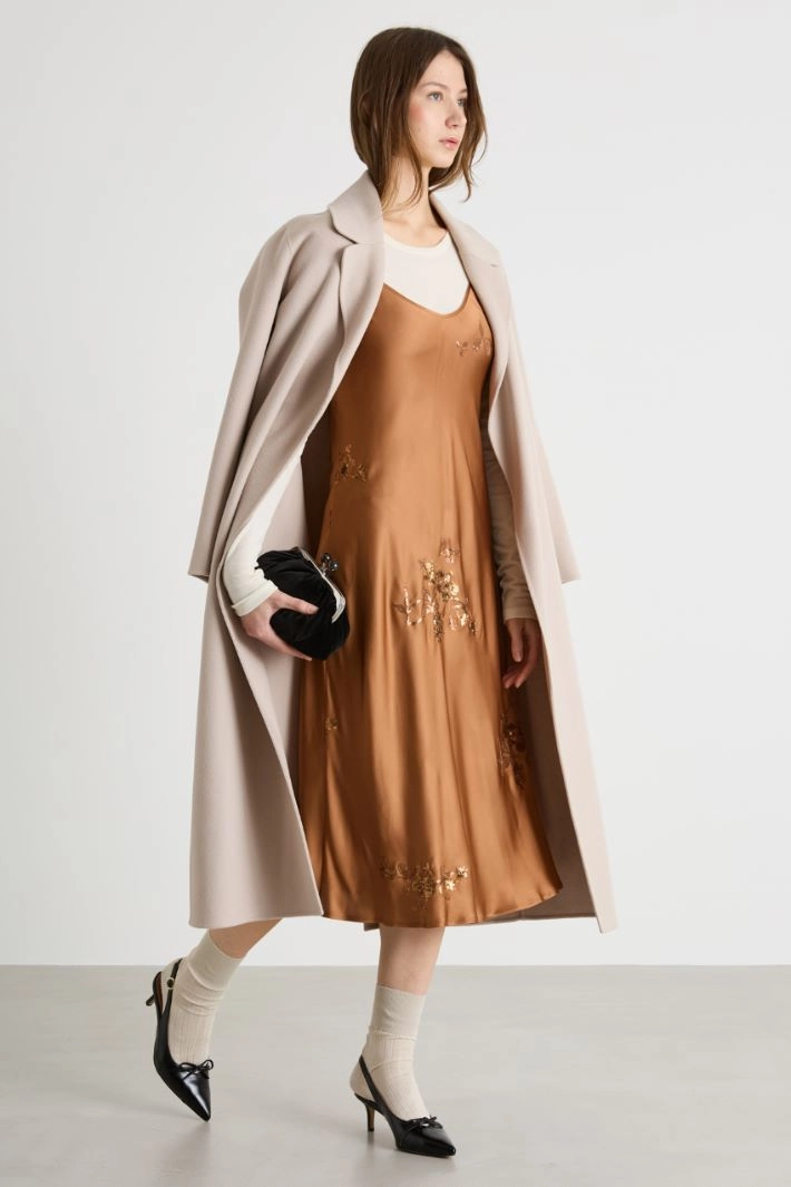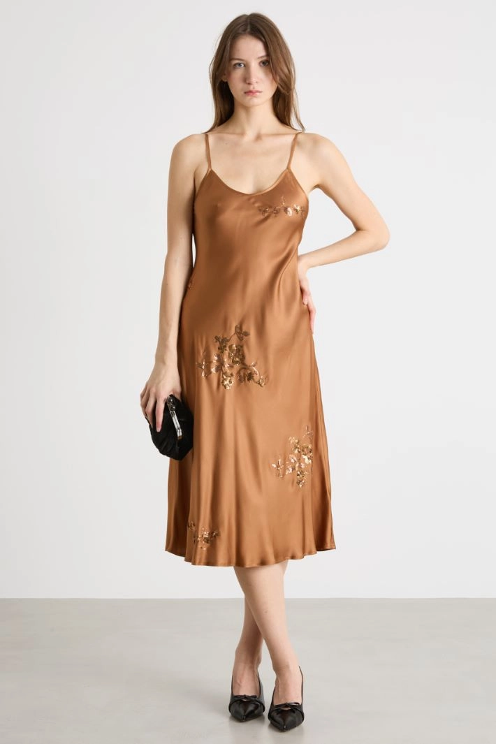 Embroidered satin slip dress