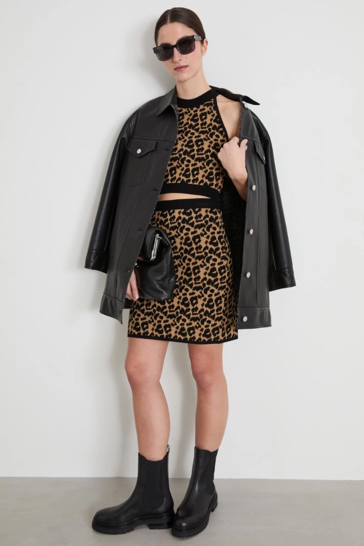 Tight-fitting mini skirt in viscose blend jacquard knit, with elastic insert at the waist.