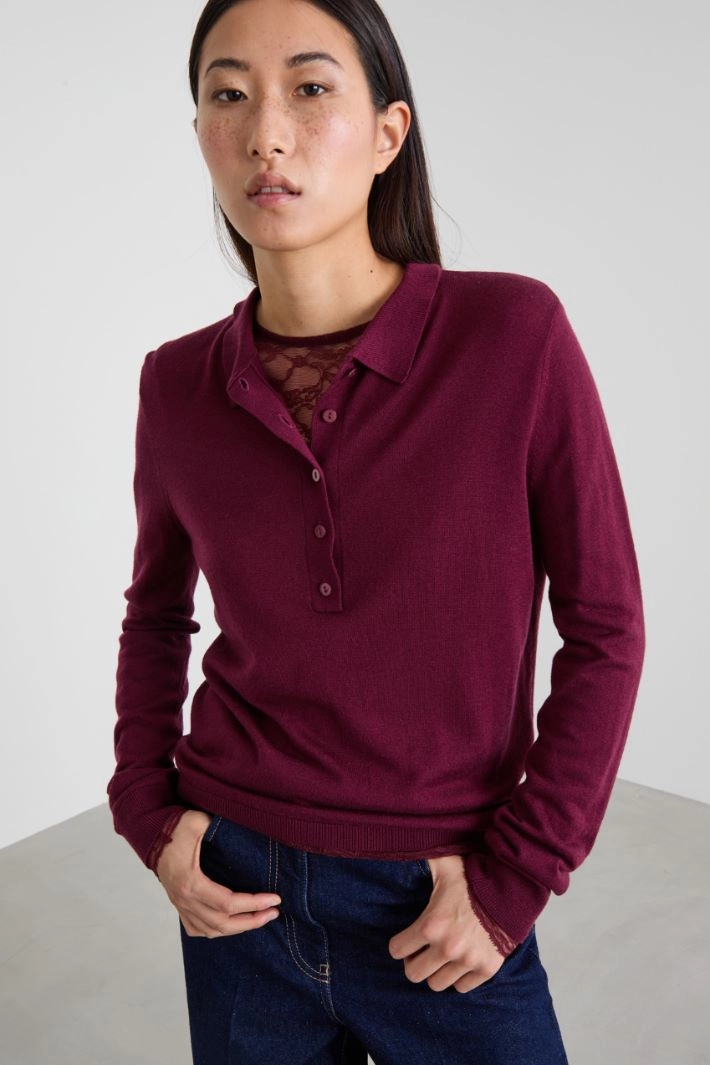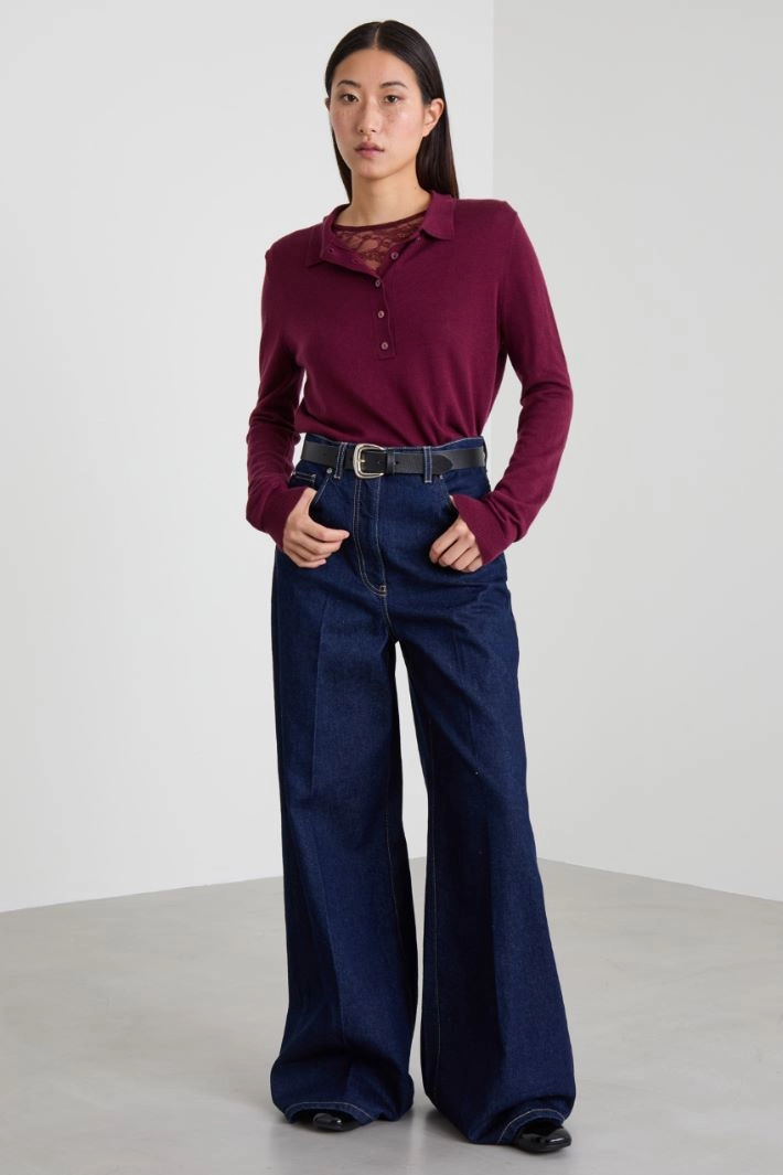 Regular-fit polo shirt in natural fibre and wool, with a classic collar and button opening, long sleeves and ribbed trim.