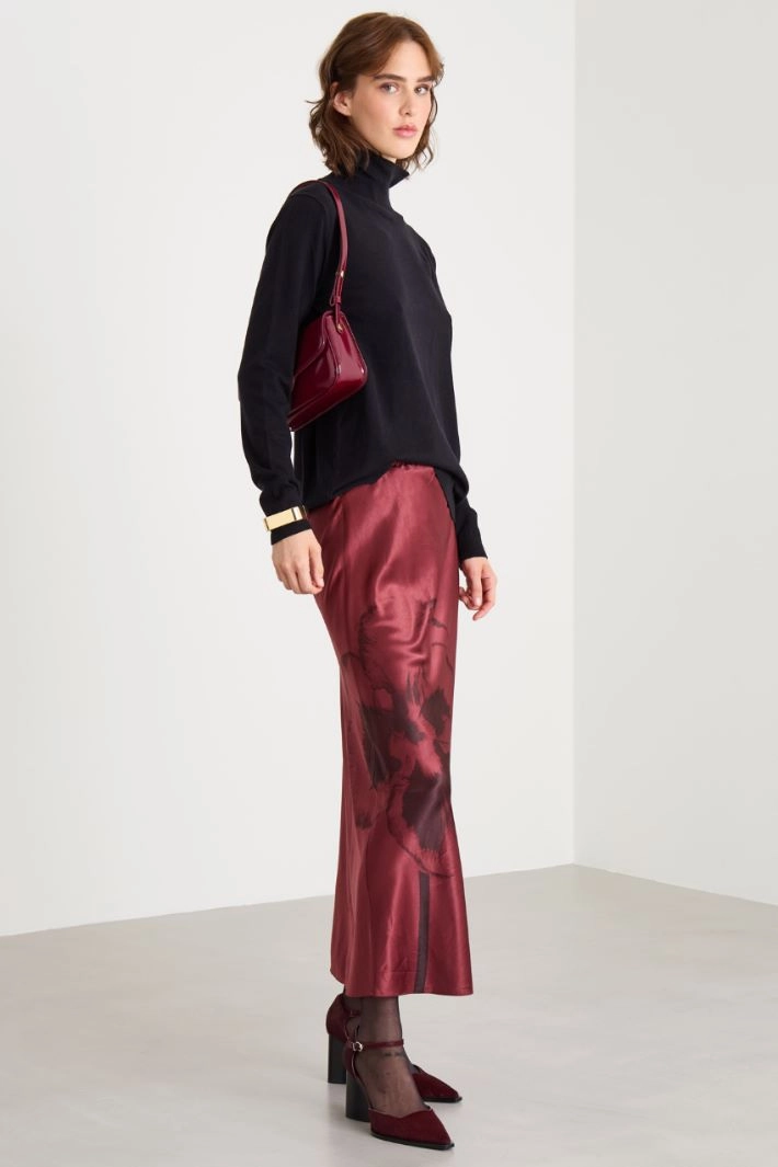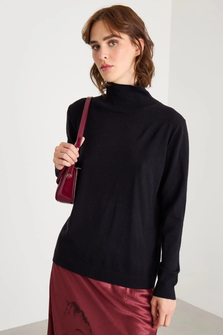 Regular-fit turtleneck sweater in stretch silk and wool blend, with a high neck, long sleeves, and ribbed trim.