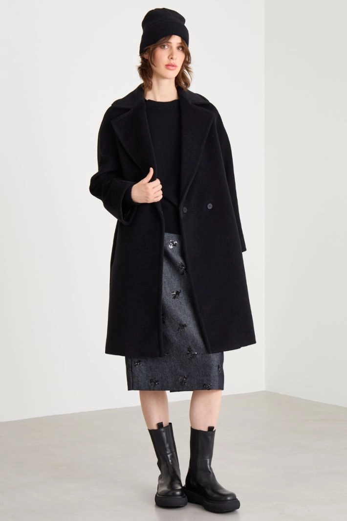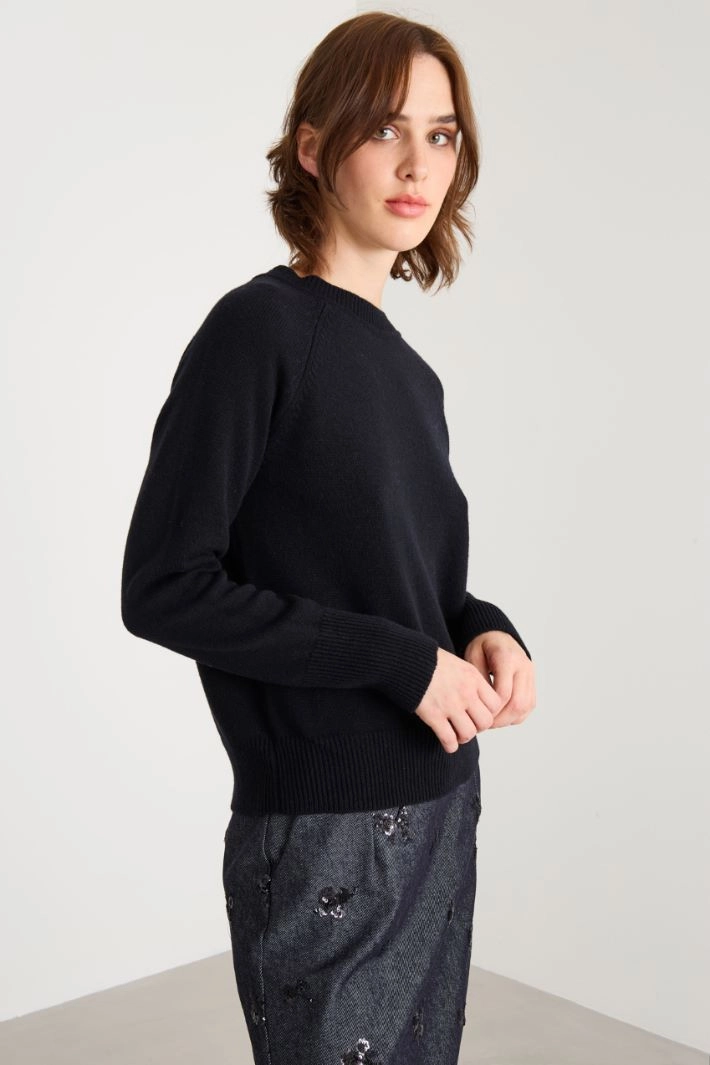 Straight-cut sweater in wool and cashmere yarn, with a crew neck, long raglan sleeves and ribbed trim.