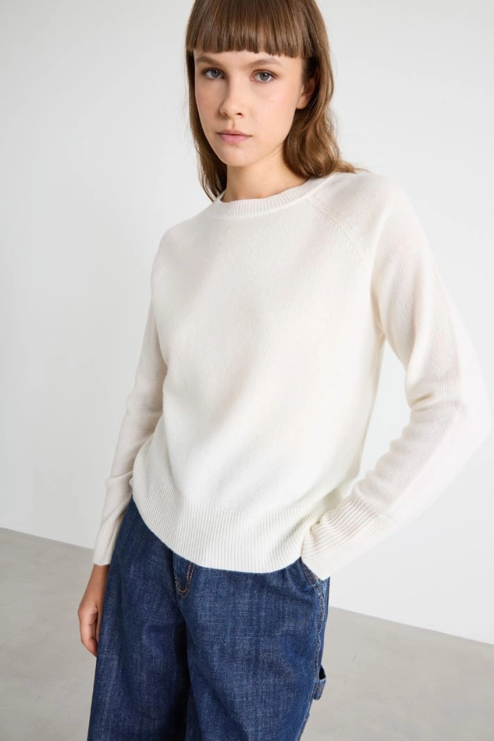 Straight-cut sweater in wool and cashmere yarn, with a crew neck, long raglan sleeves and ribbed trim.