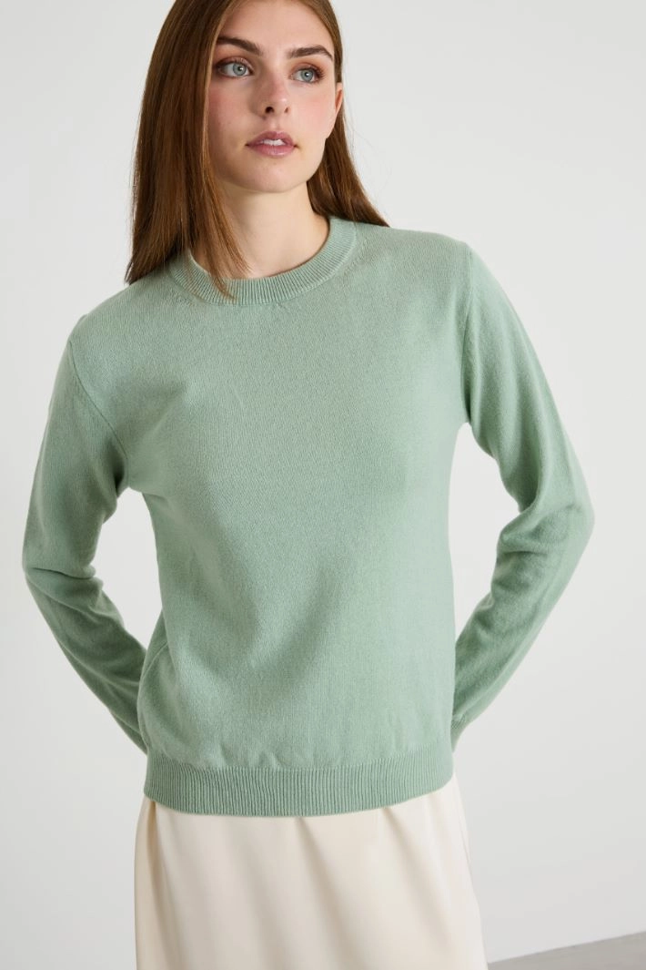 Regular-fit sweater in wool and cashmere yarn, with crew neck, long sleeves and ribbed trim.