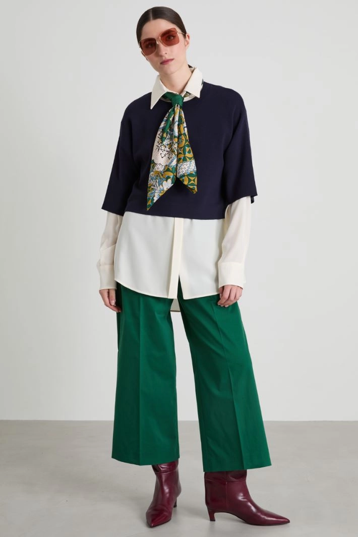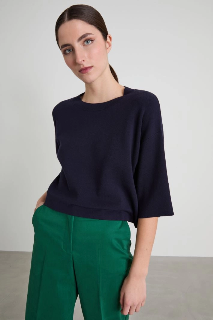 Oversized sweater in viscose blend yarn, with crew neck, three-quarter sleeves and dropped shoulders.