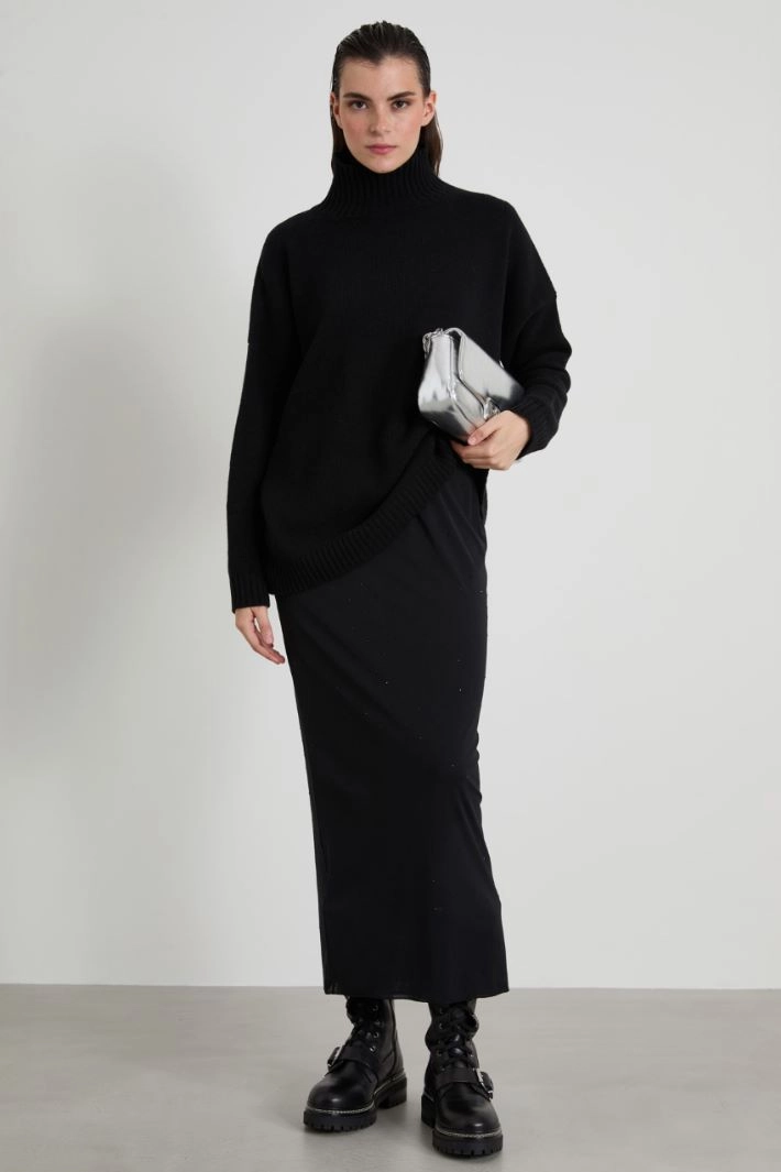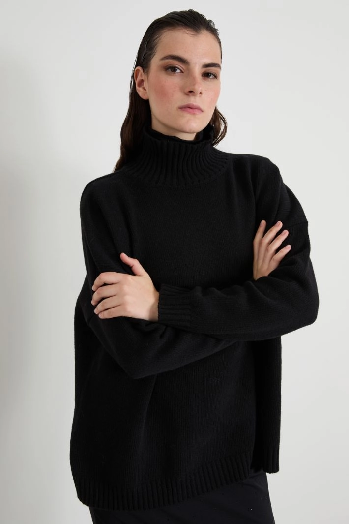 Oversized sweater in pure wool yarn, with a crater neck, long sleeves with dropped shoulders and ribbed trim.