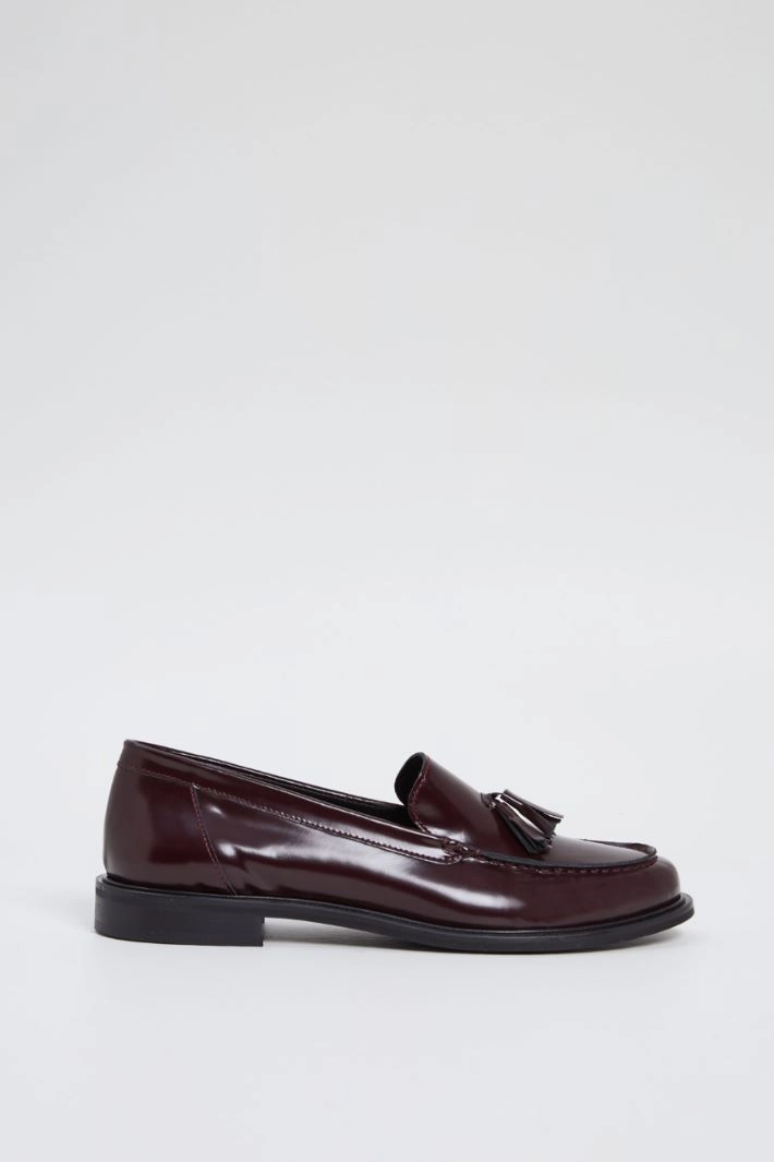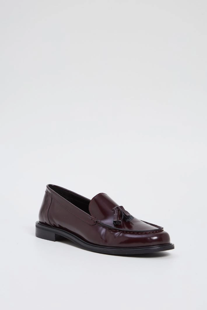 Moccasins in genuine leather with a shiny finish, with tassel motif and stitching on the upper. Leather lining, rubber sole.