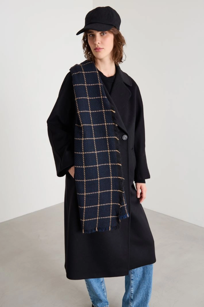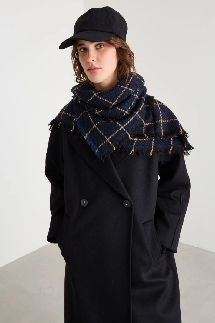 Stole in soft wool and alpaca blend fabric, yarn-dyed with fringed edges