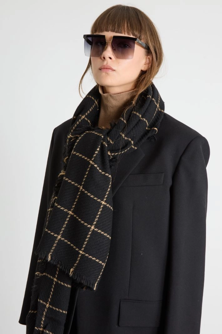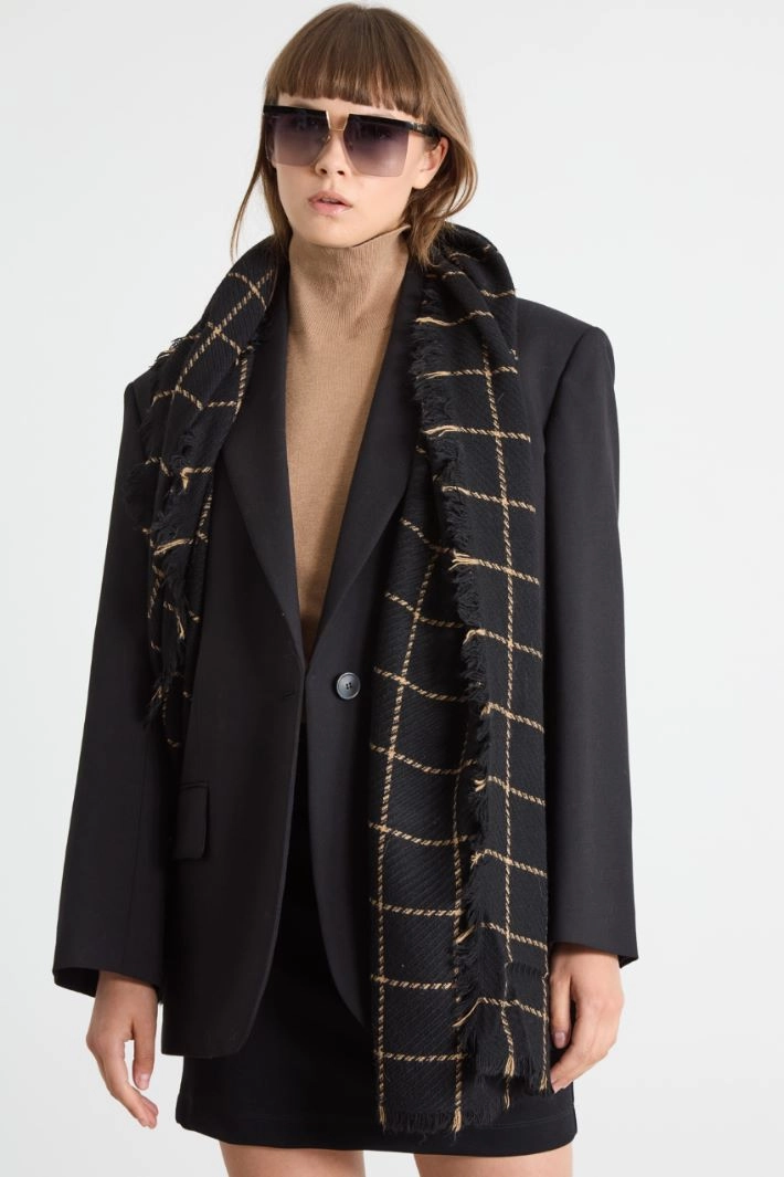 Stole in soft wool and alpaca blend fabric, yarn-dyed with fringed edges