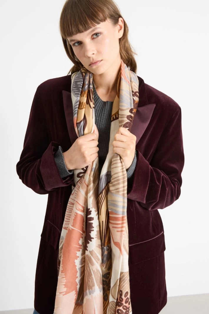 The measurements of the scarf are: Length 180 cm and Height 85 cm.