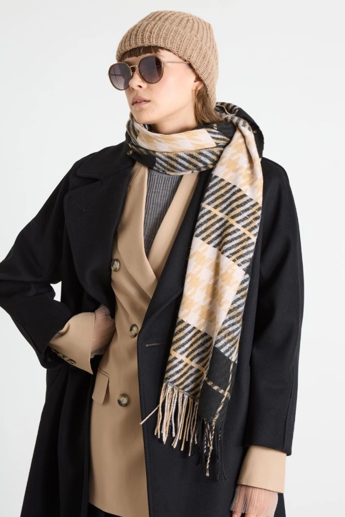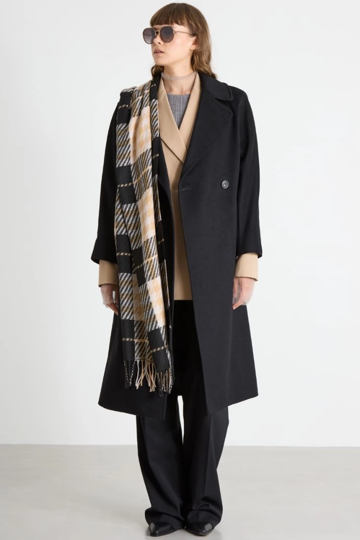 Stole in yarn-dyed fabric, with fringes at the bottom.