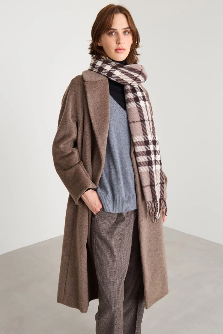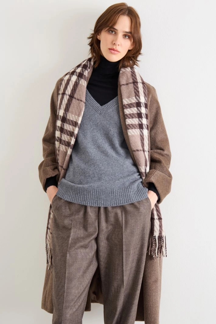 Stole in yarn-dyed fabric, with fringes at the bottom.