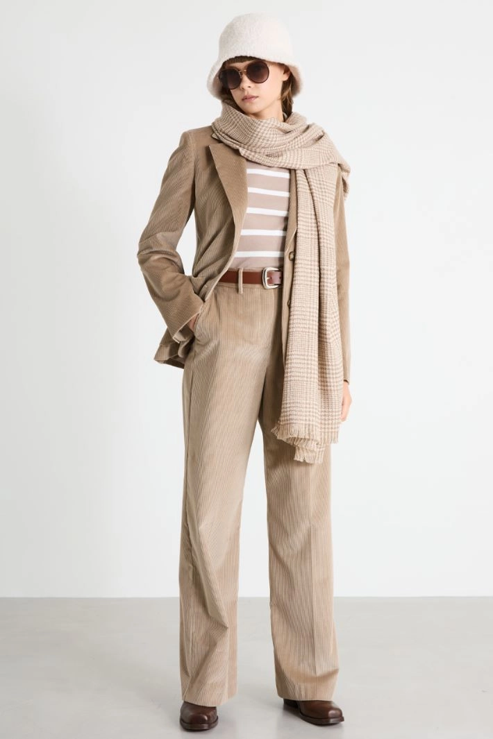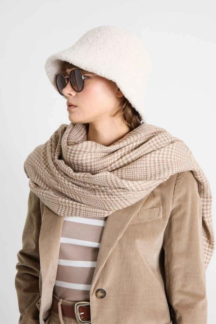 Scarf in soft yarn-dyed fabric with lamé fibre.