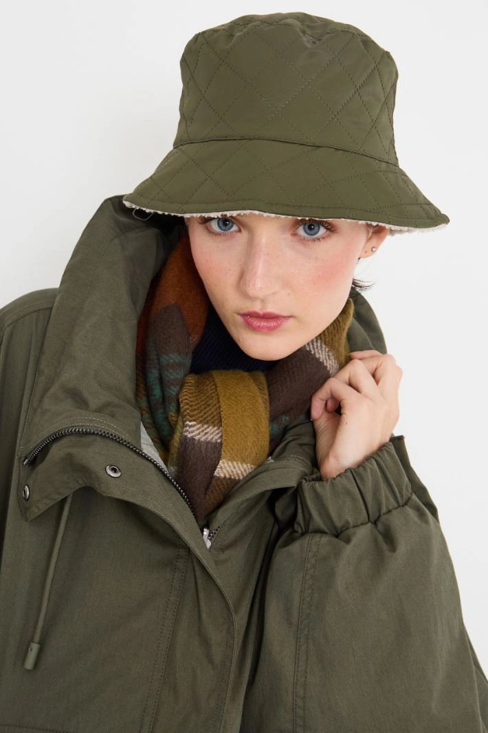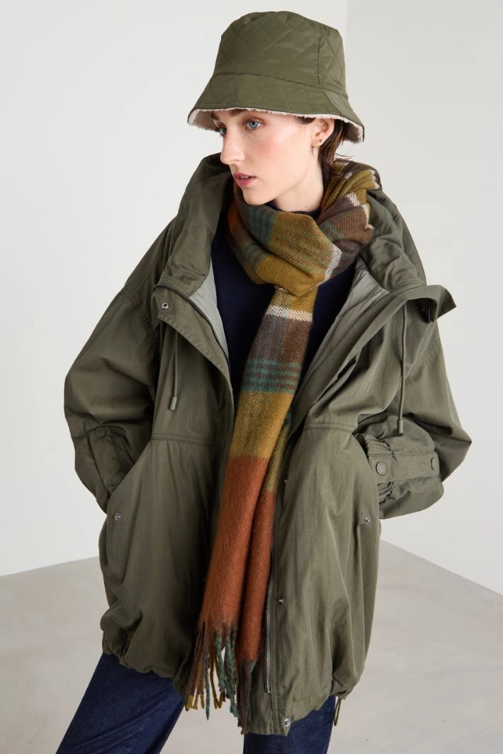 Scarf in yarn-dyed fluffy fabric, with fringes at the hem.