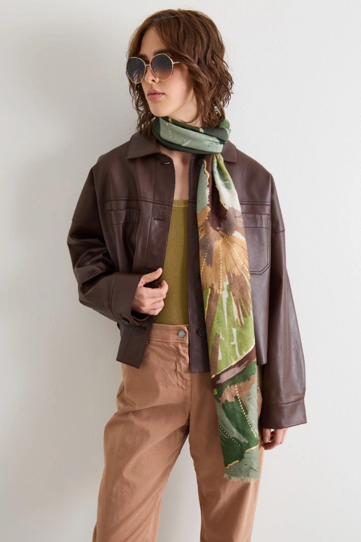 The measurements of the scarf are: Length 180 cm and Height 85 cm.