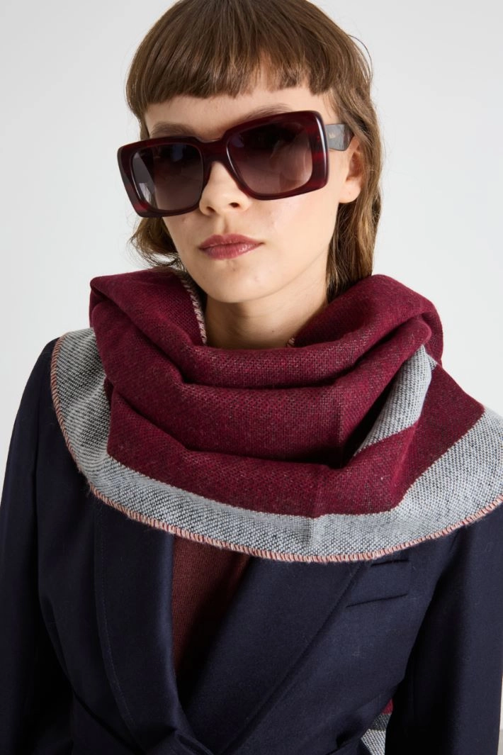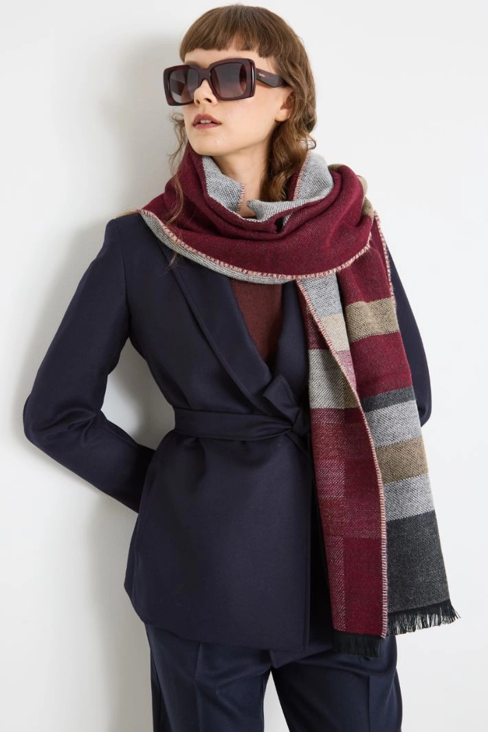 Stole in soft yarn-dyed fabric, with fringes at the bottom.