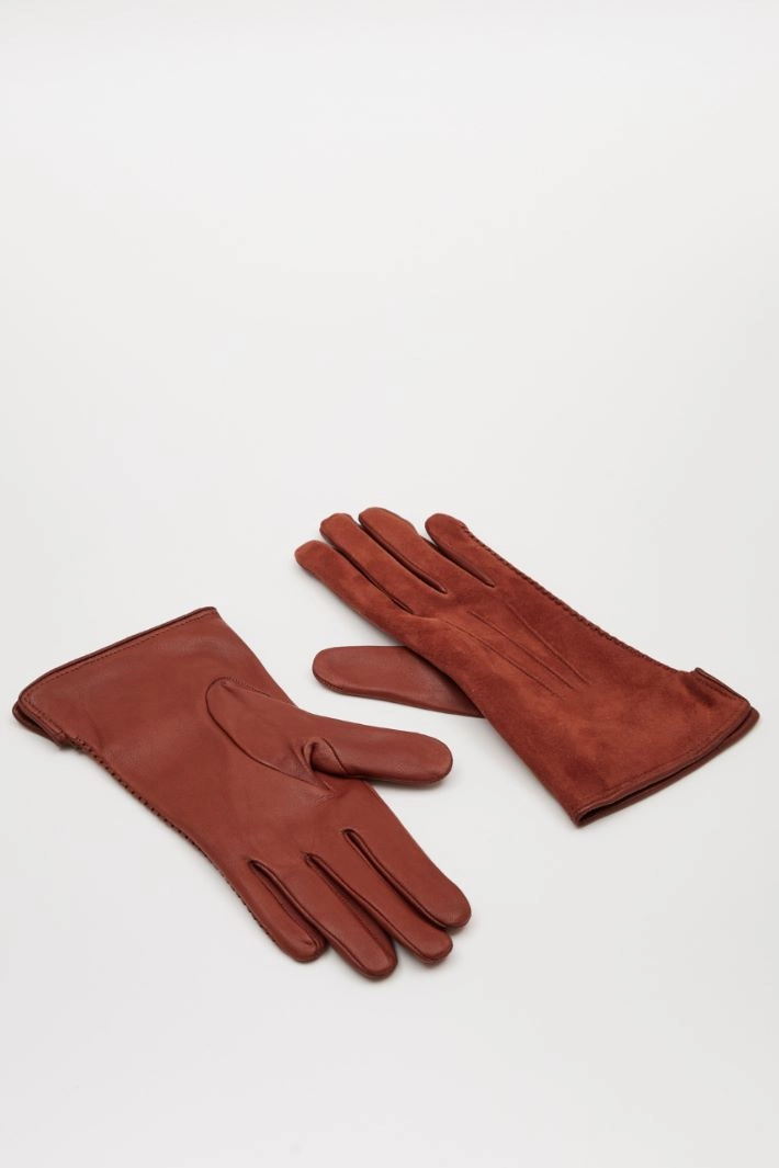 Gloves in genuine leather with suede-effect insert, raised cuts, slit on the wrist and pure wool lining.