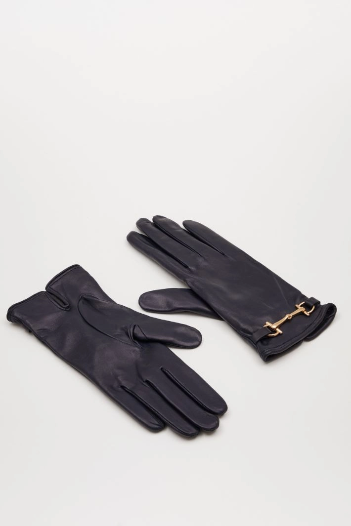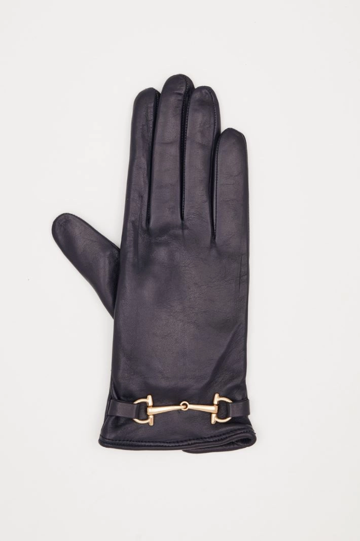 Gloves in genuine leather, with metal clamp detail, slit at the wrist and pure wool lining.
