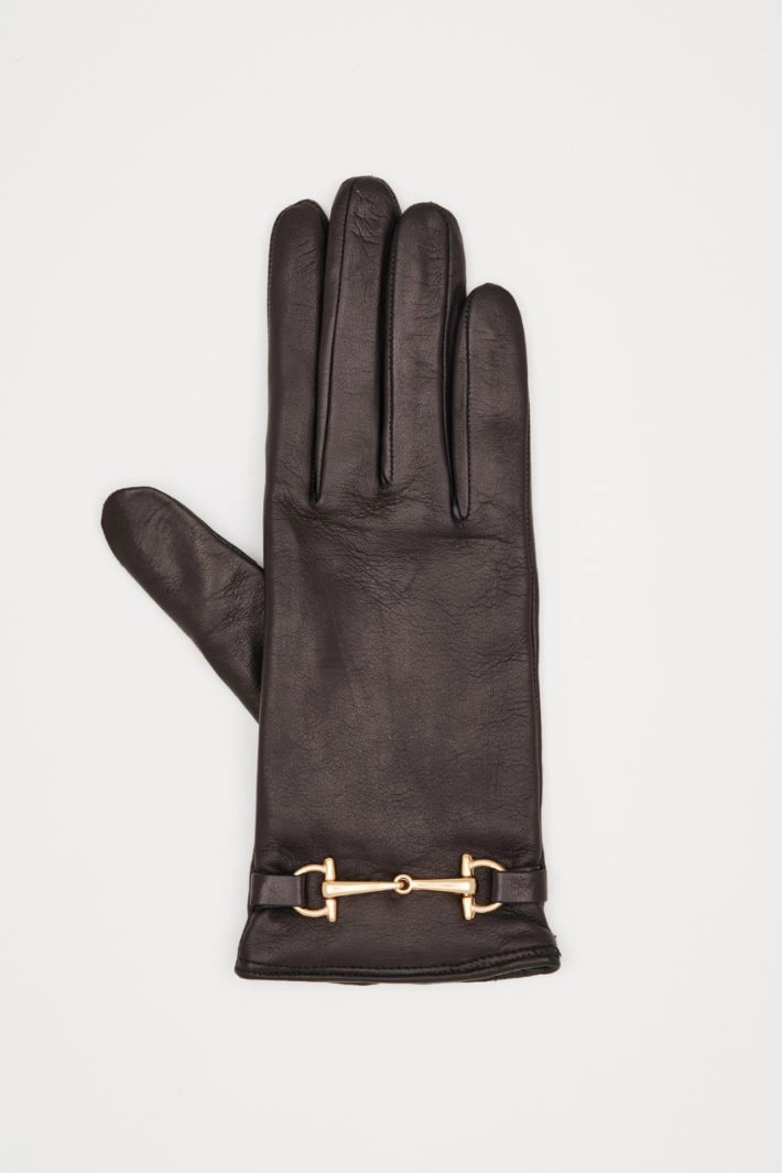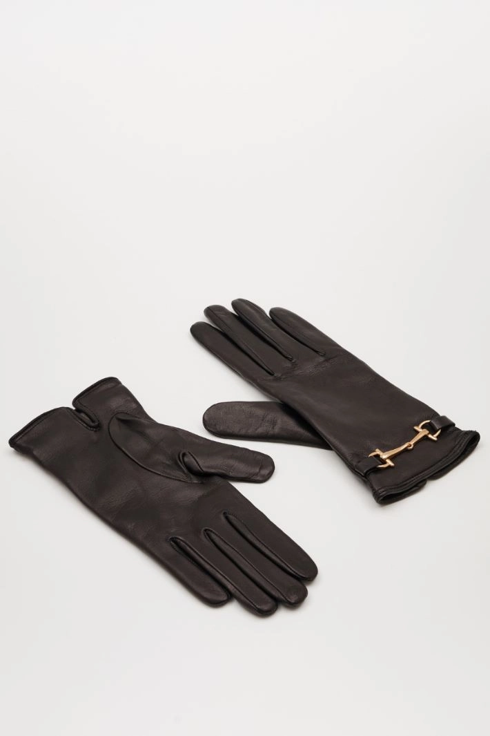 Gloves in genuine leather, with metal clamp detail, slit at the wrist and pure wool lining.