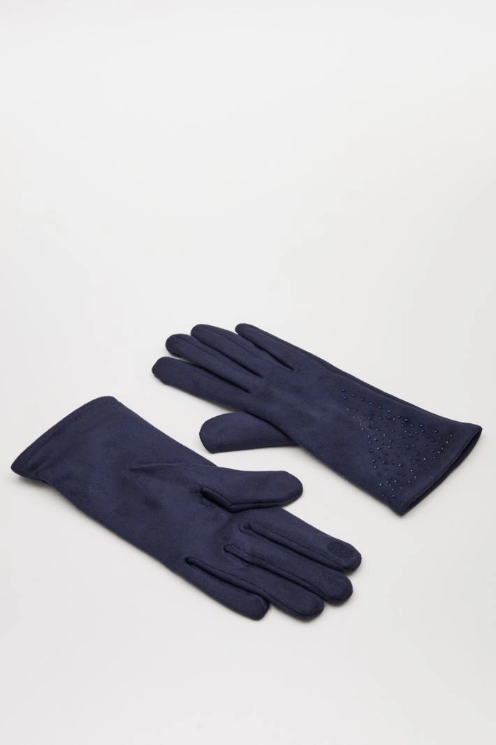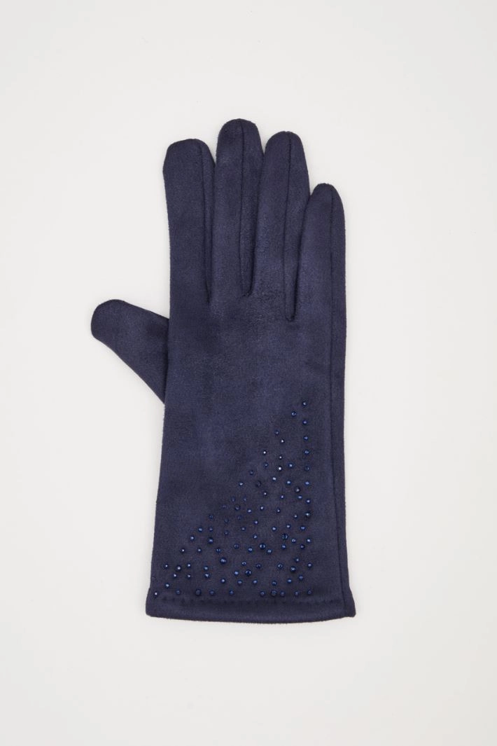 Gloves in suede-effect jersey, with rhinestones applied to the wrist. Plush interior.