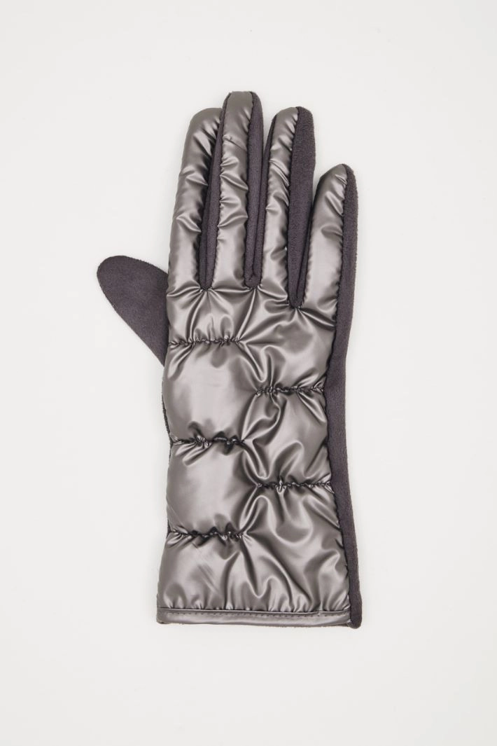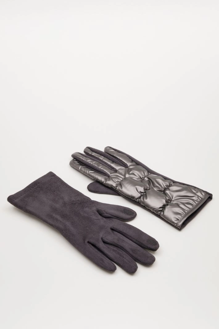 Gloves in suede-effect jersey, with quilted technical satin insert. Plush interior.