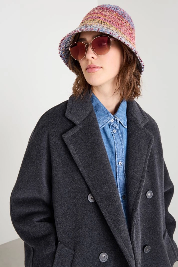Cloche in yarn-dyed wool-blend bouclé fabric.