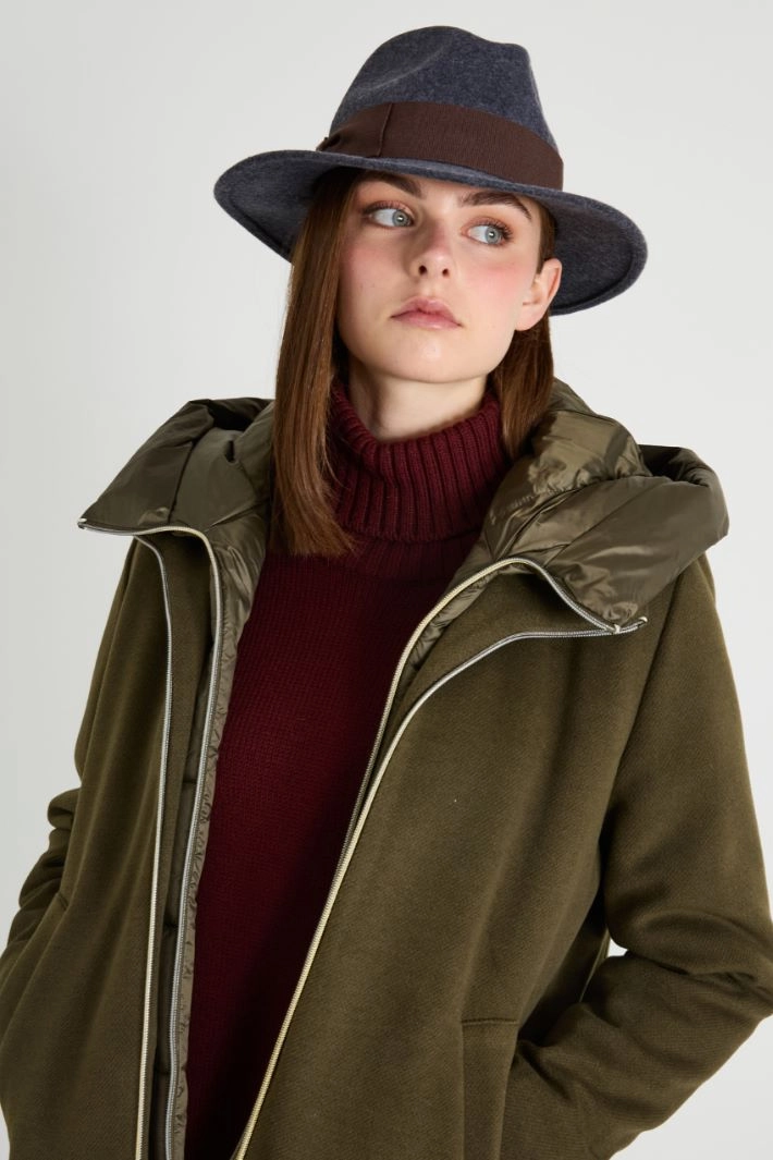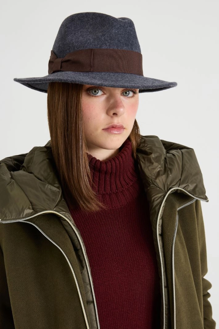Fedora in pure wool, with a cotton-blend grosgrain ribbon.