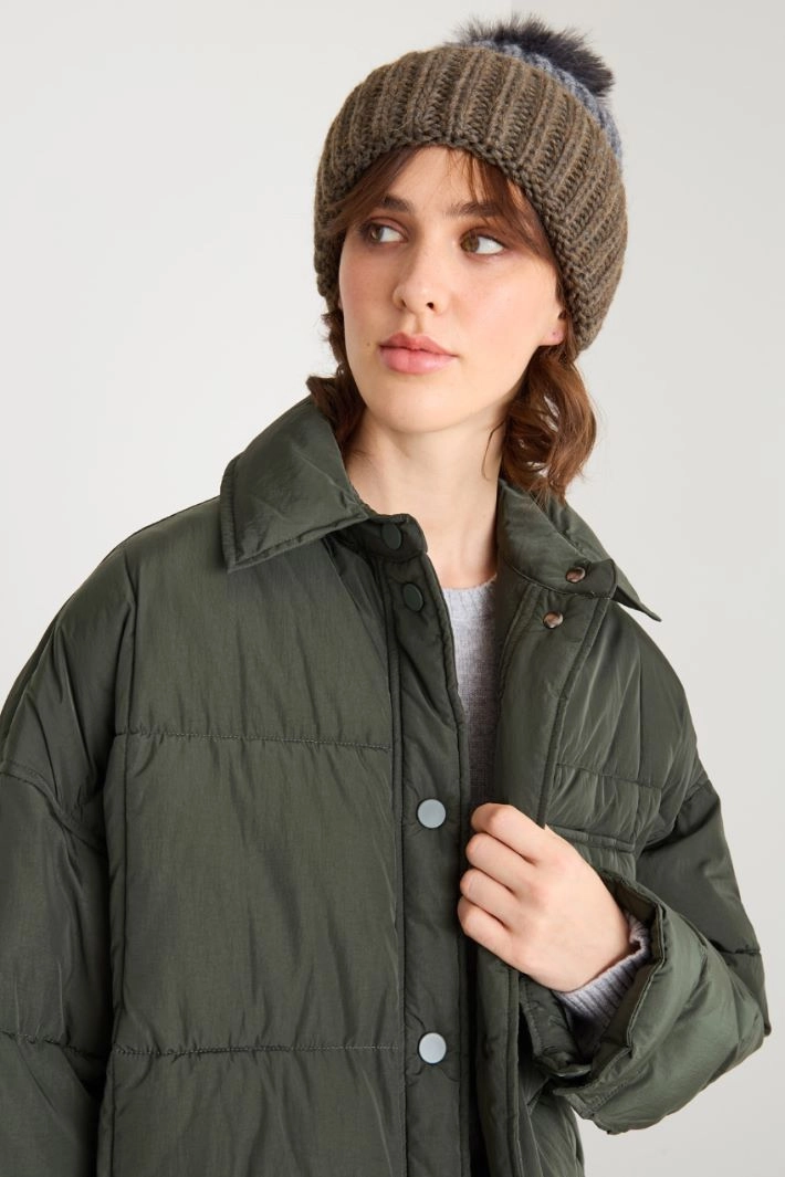 Hat in alpaca and wool yarn, with cuff and pom pom.