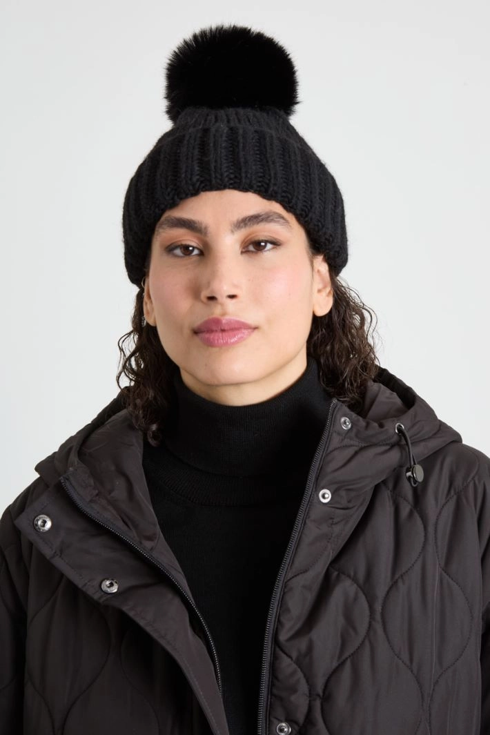 Hat in alpaca and wool yarn, with cuff and pom pom.