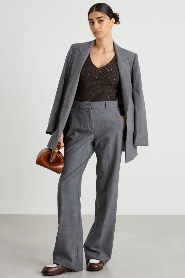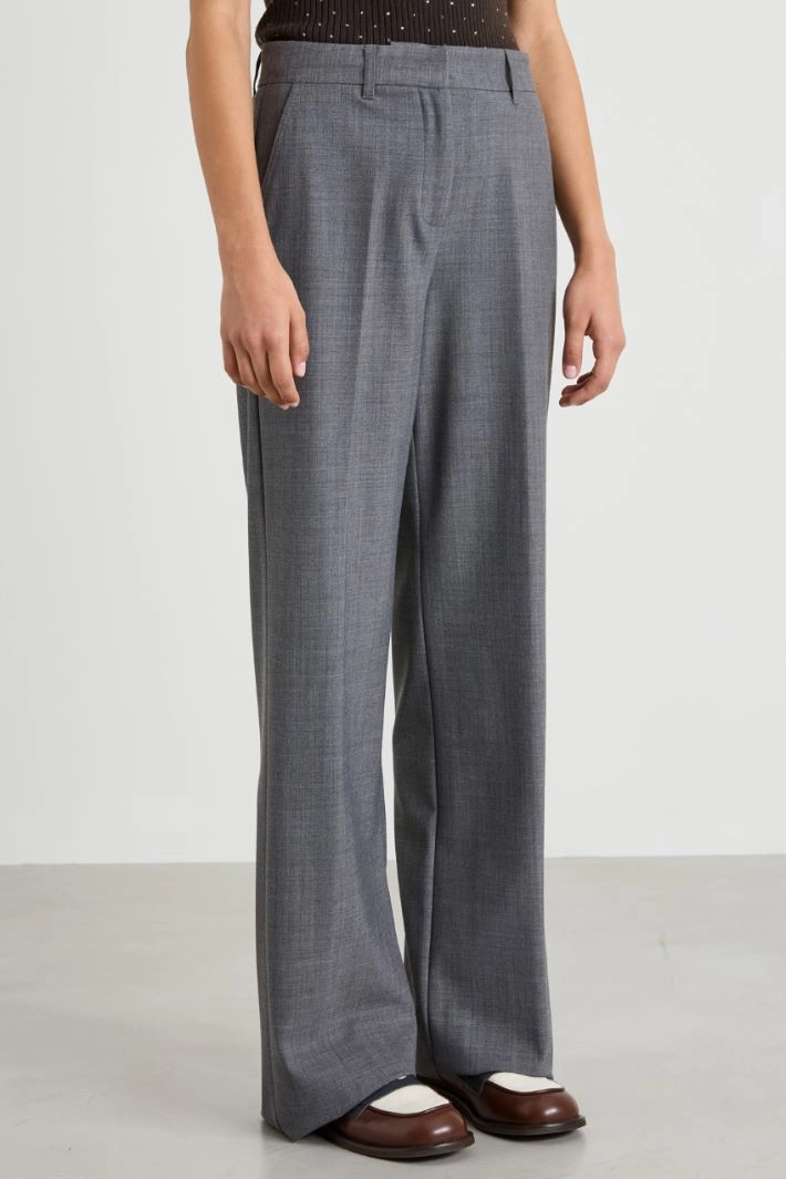 Straight-cut trousers in wool blend canvas, with belt loops at the waist, French pockets in the front, welt pockets at the back and crease ironed along the length. Hidden fastening with zip, button and hook.