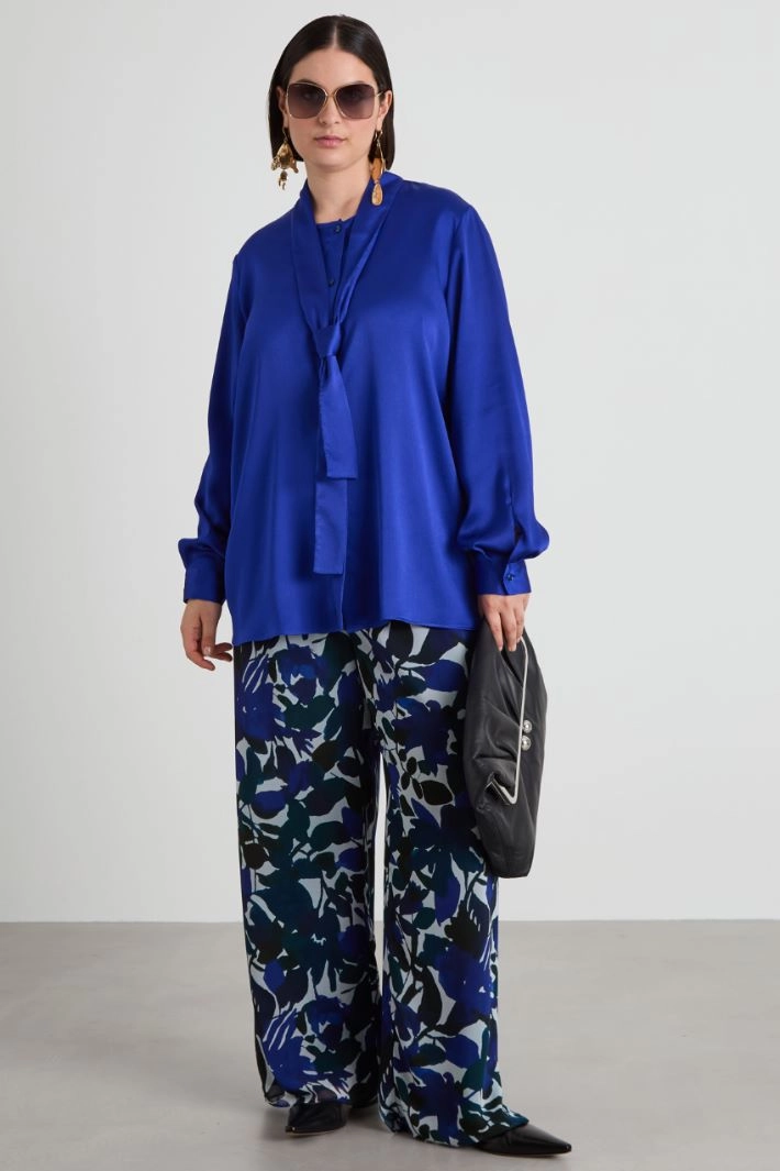 Loose-fit trousers in printed georgette, with elastic waistband. Lined.