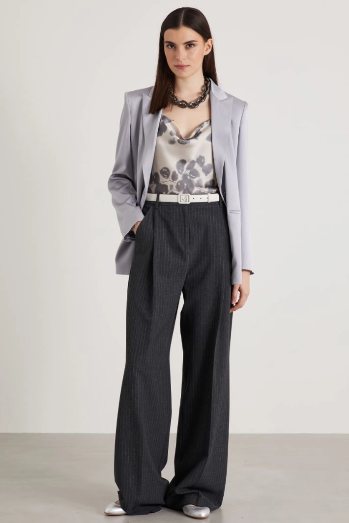 Straight-fit trousers in viscose blend canvas with pinces, belt loops, French pockets in the front, welt pockets in the back and crease ironed along the length. Hidden fastening with zip, button and hook.