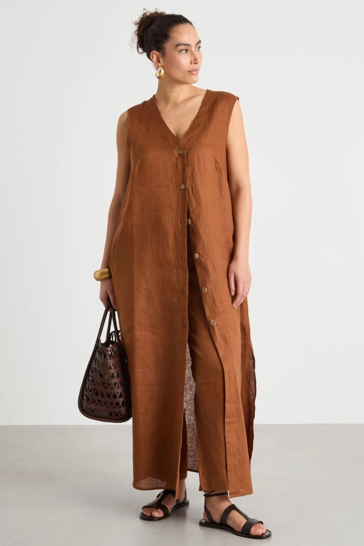Long V-neck linen dress