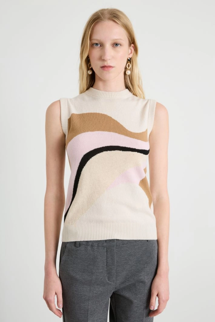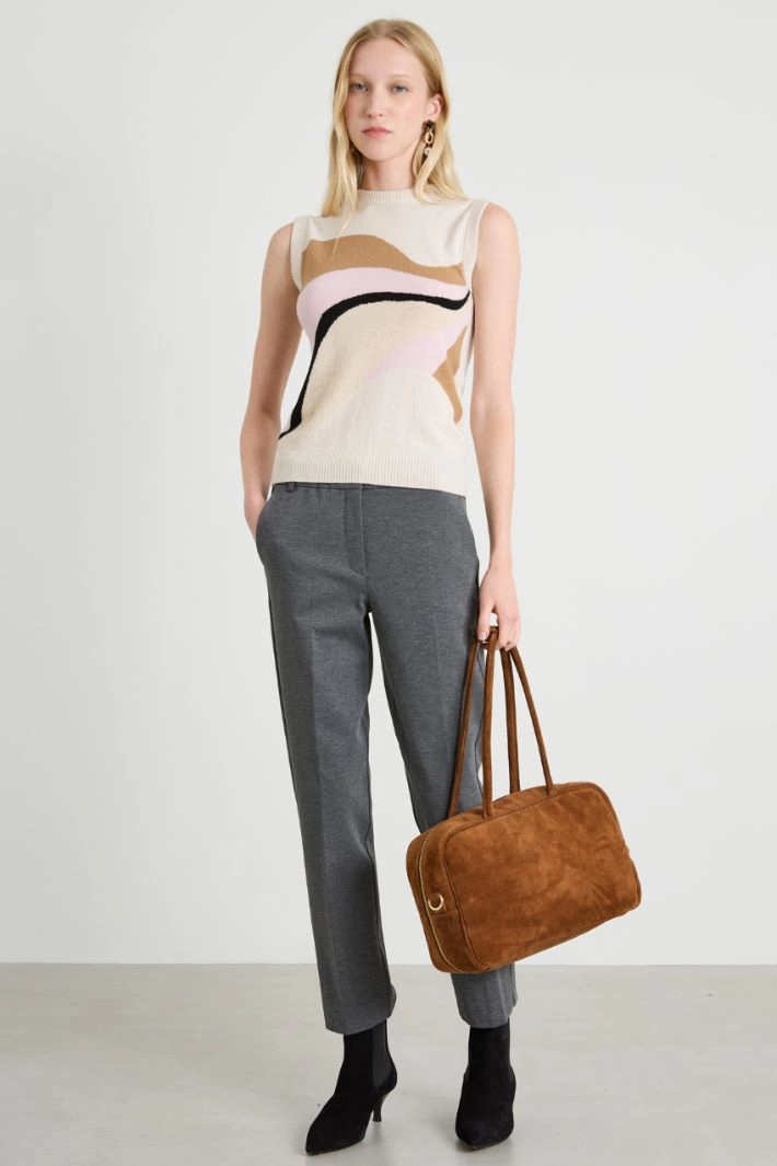 Regular-fit gilet in blend of wool, viscose and cashmere, with inlay on the front, crew neck, sleeveless and ribbed edges.
