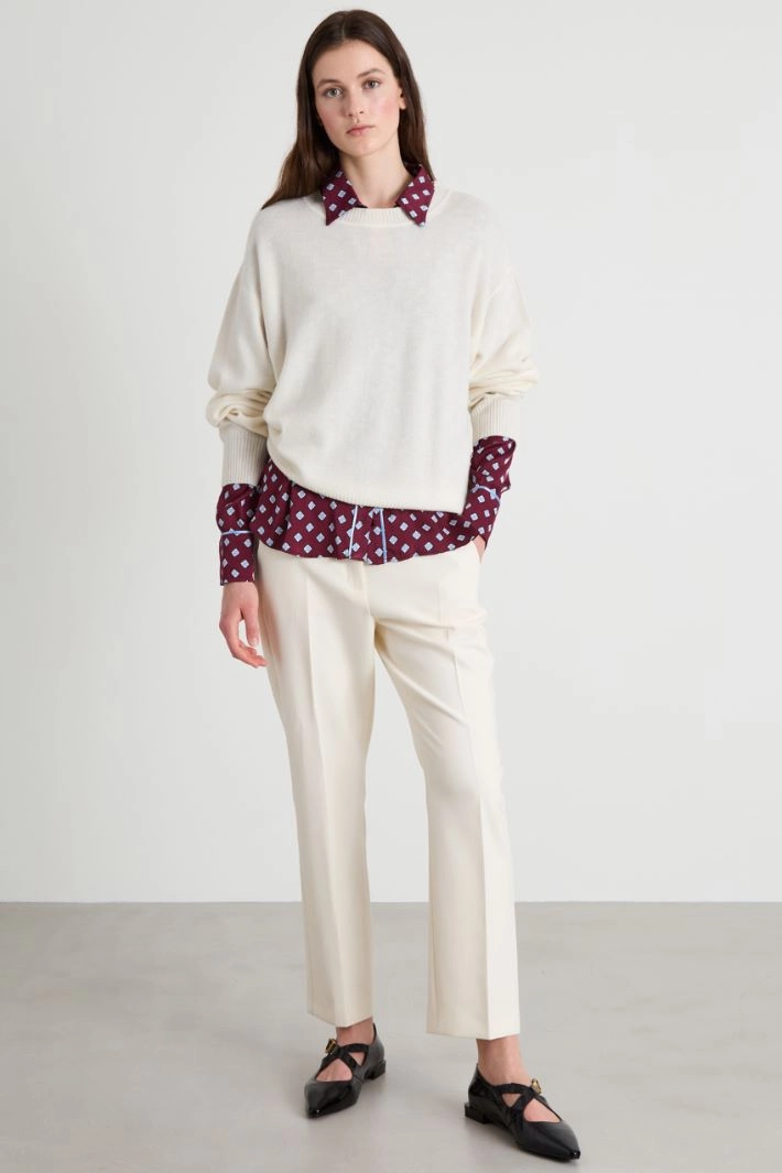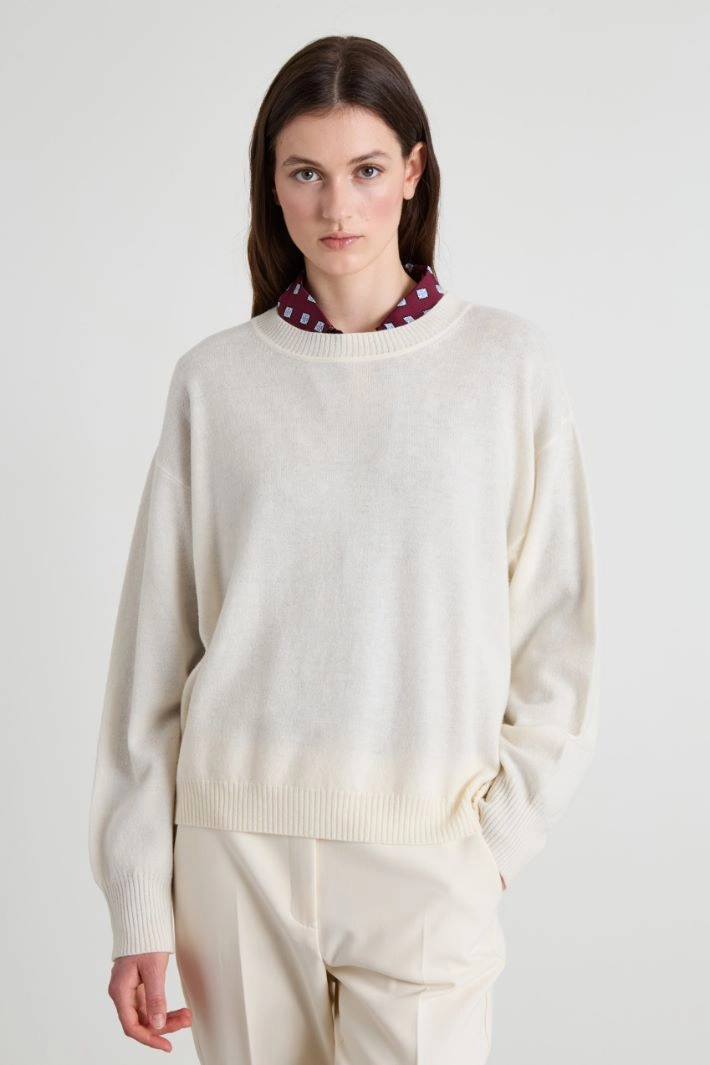Regular-fit sweater in pure wool yarn, with crew neck, long sleeves and ribbed edges.