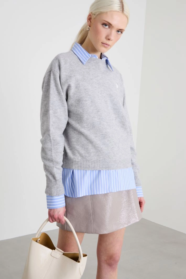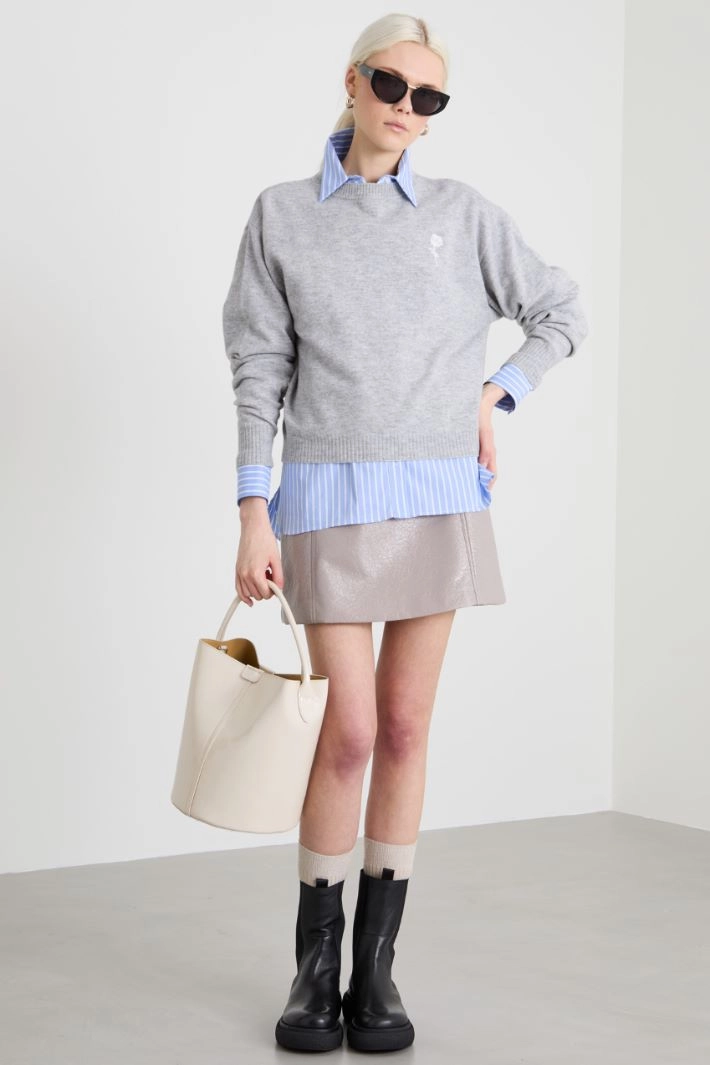 Regular-fit sweater in pure wool yarn, with crew neck, long sleeves and ribbed edges.