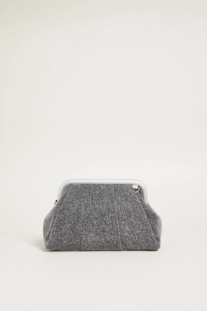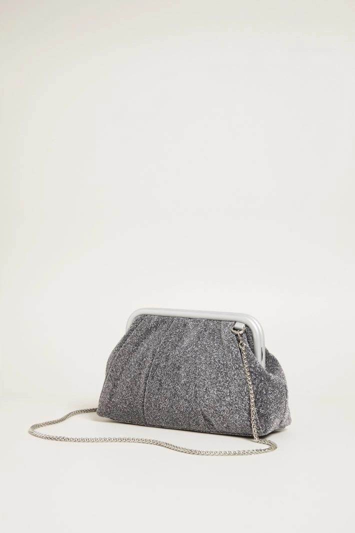 Clutch in jersey lamé, with thin removable chain shoulder strap, internal pocket and magnetic closure. Lined interior.