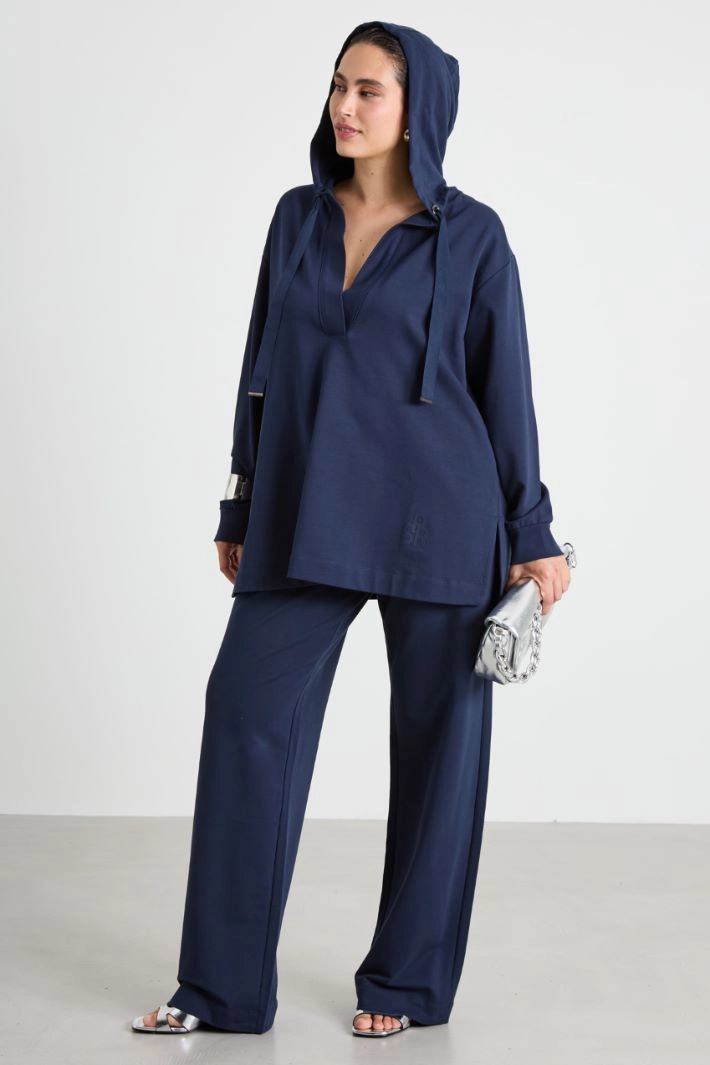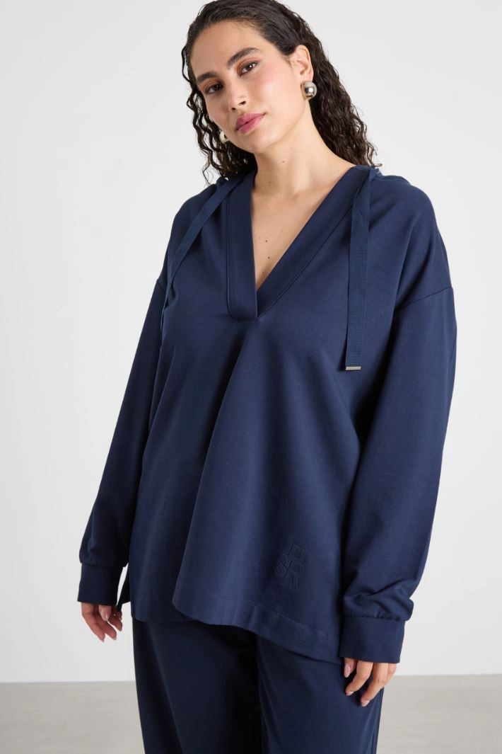 Loose-fit sweatshirt in stretch cotton jersey, with drawstring hood and deep V-neck, long dropped sleeves and side slits.