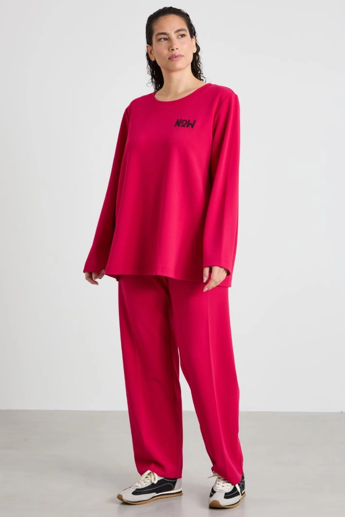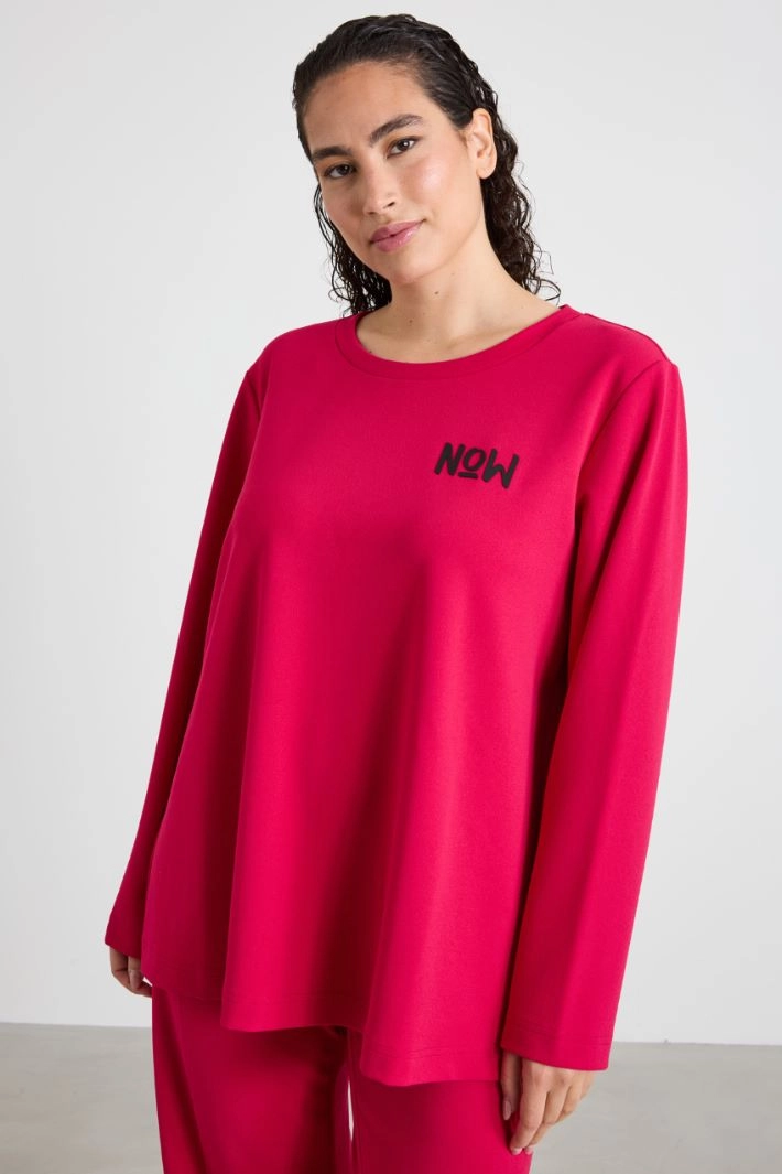 Straight-cut sweatshirt in compact stretch crepe jersey, with crew neck, long sleeves and patch applied on the front.