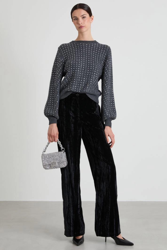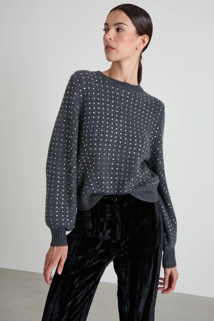 Regular-fit sweater in wool blend yarn with rhinestones applied on the front, crew neck, long sleeves and ribbed edges.