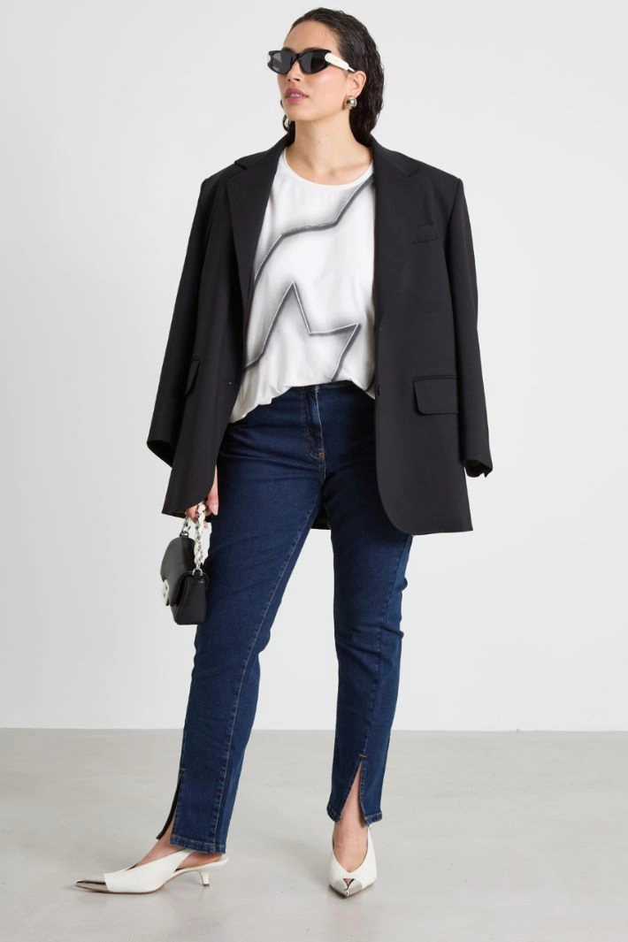 Regular-fit T-shirt in stretch cotton jersey, with embroidered rhinestone chain and print, crew neck and three-quarter sleeves.