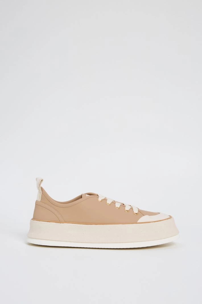 Sneakers in smooth genuine leather with lace-up fastening. Cotton canvas lining, rubber platform sole.