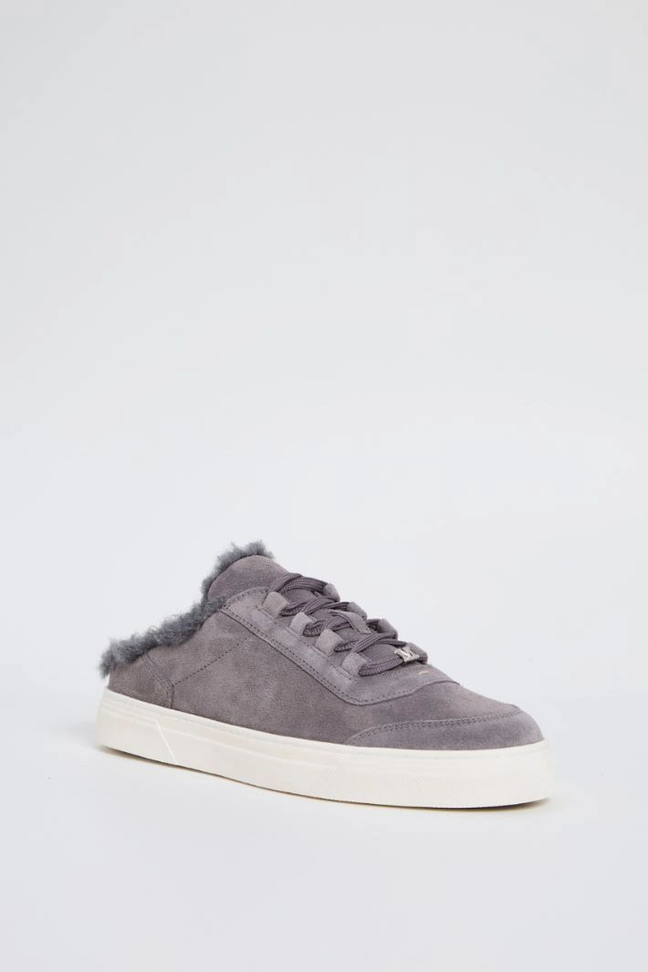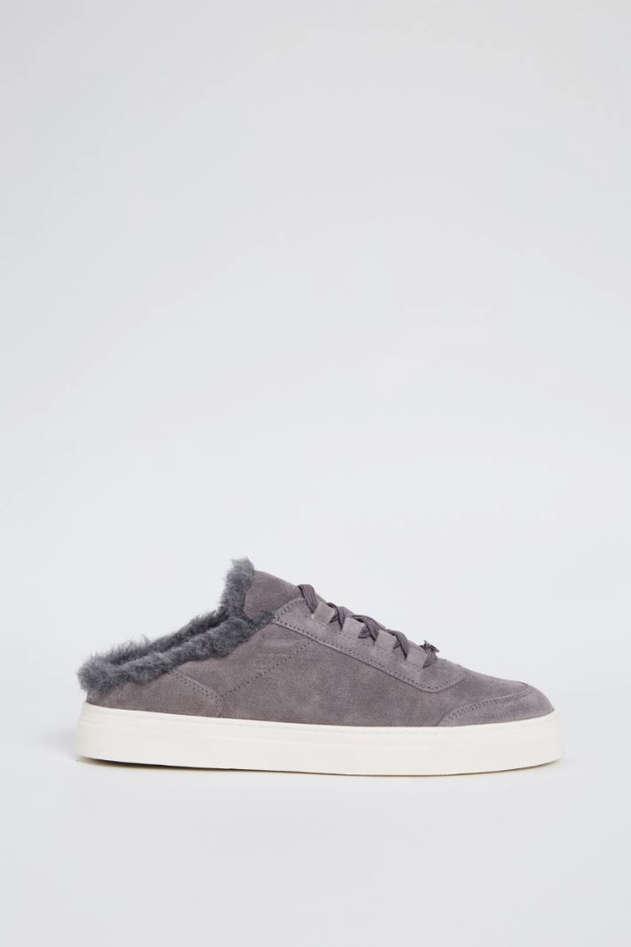 Sneakers in genuine suede leather with lace-up fastening, camel and silk plush effect interior. Rubber sole.