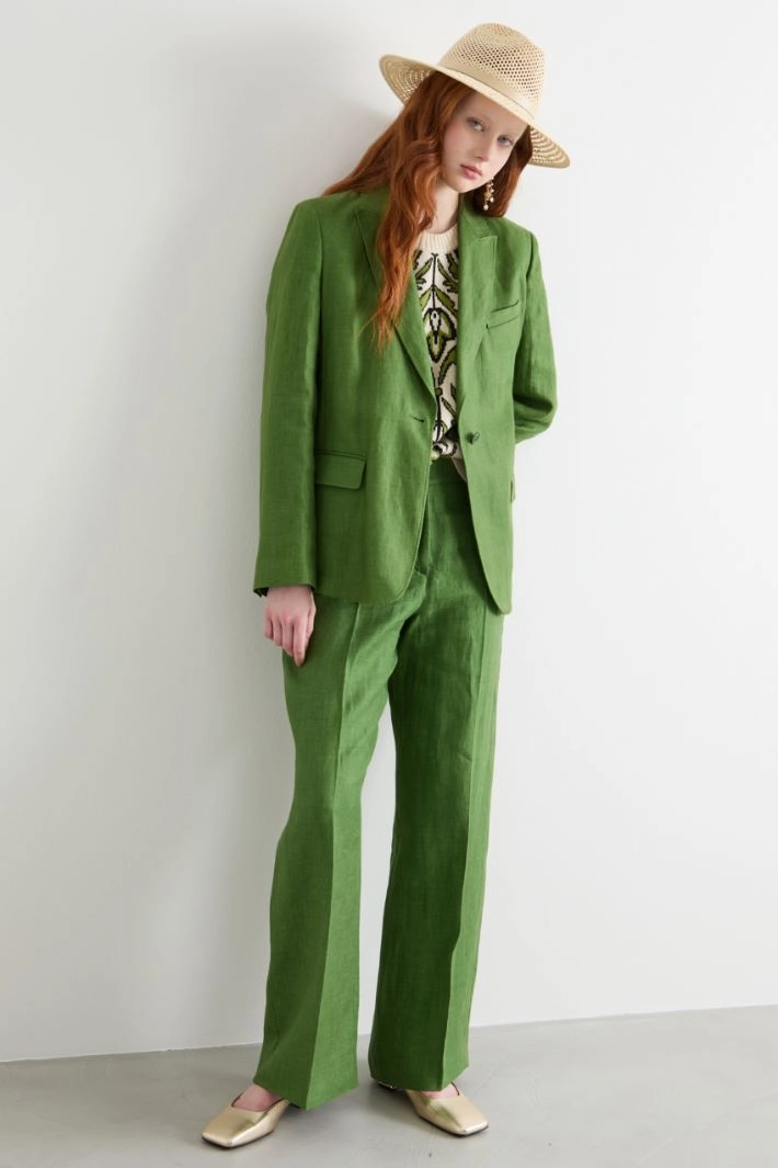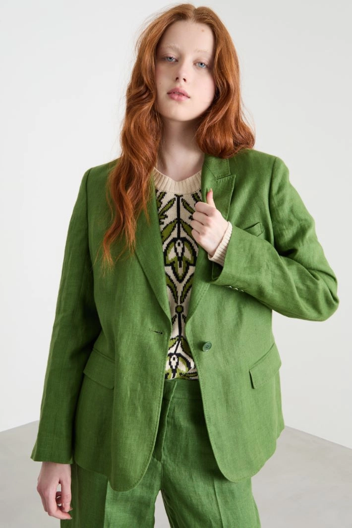 Slightly fitted blazer crafted in pure linen, with a lapel collar, long sleeves with buttoned cuffs, a breast pocket, flap welt pockets and a central vent on the back. Single-button fastening.